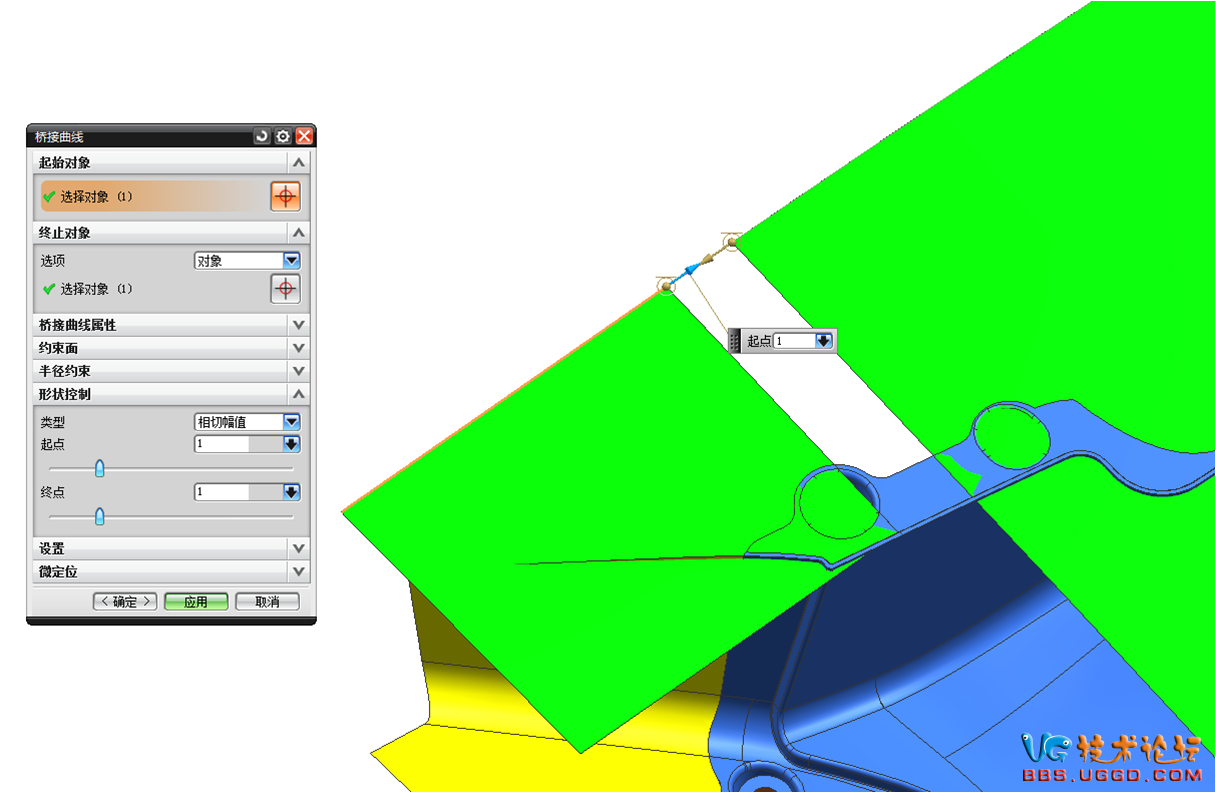 7.用“橋接曲線”命令橋接一根線,如圖所示